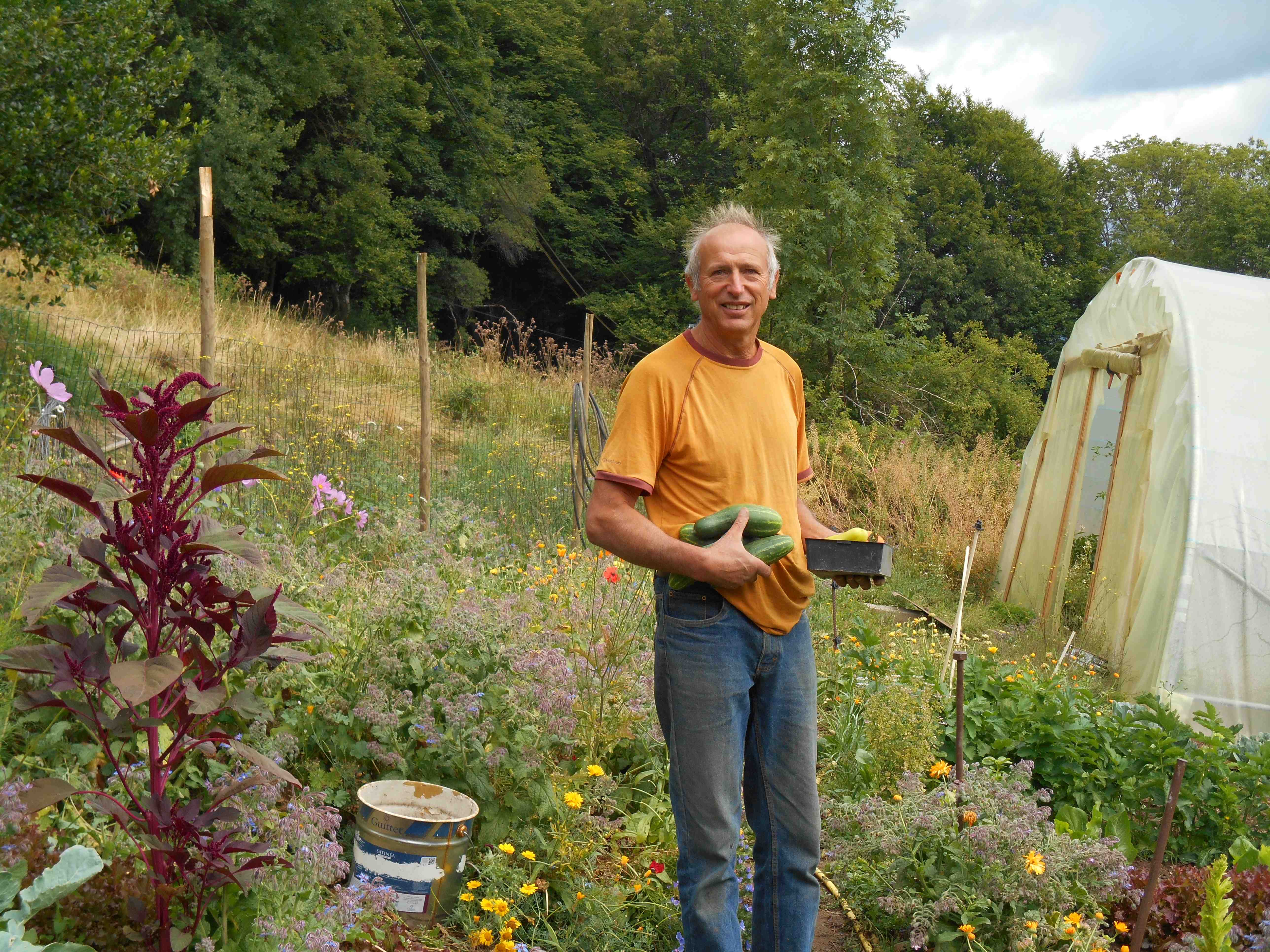 Perché à 650m. d’altitude, les jardins de Gilles offrent un magnifique panorama. Il y a là 10 ares de cultures. Une grande surface qui permet à la famille d’être autonome en légumes. Avec deux végétariennes à la maison, mieux vaut assurer ! C’est Viviane qui transforme et cuisine les récoltes déposées par seaux devant la porte d’entrée. Ce jour-là, elle mitonne des lasagnes de légumes…