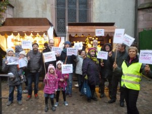 C’est pourquoi, des membres de l’association de transition « Pas à Pas, vallée de la Weiss en transition » ont décidé de marcher en petits groupes dimanche soir dans le marché de Kaysersberg, affichant « Ensemble pour le climat
